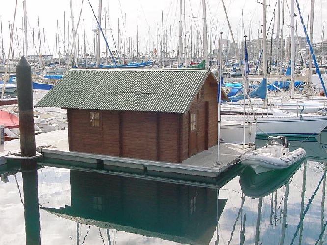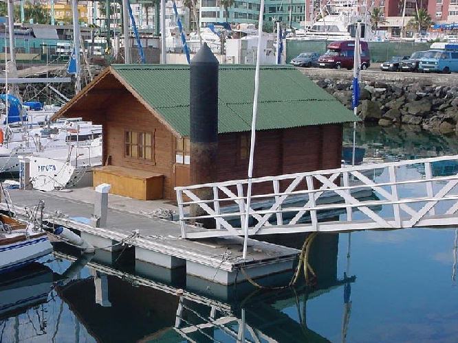 Fotografiert im Hafen von Las Palmas auf Gran Canaria, ein Gartenhaus auf Pontons gebaut. Nur leider nicht fahrbar.