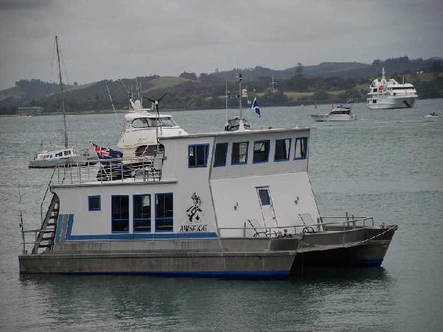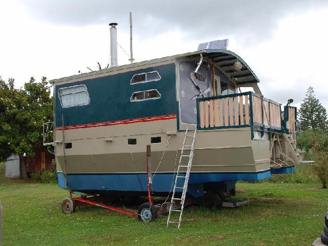 Hausboot in Neuseeland aus Aluminium bei Kaitaia im Norden.