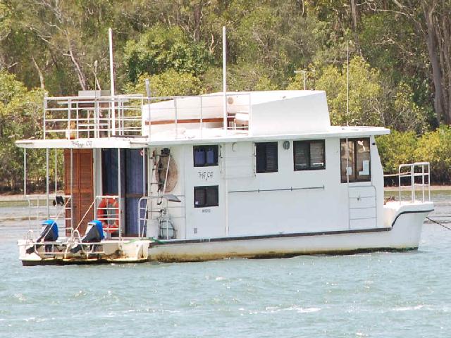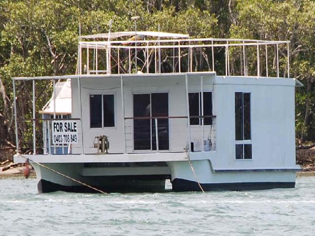 Dieses Hausboot fand ich an der Gold Coast in Australien, es war für 169.000,- Aus $ zu verkaufen. 2x 60 PS AB.