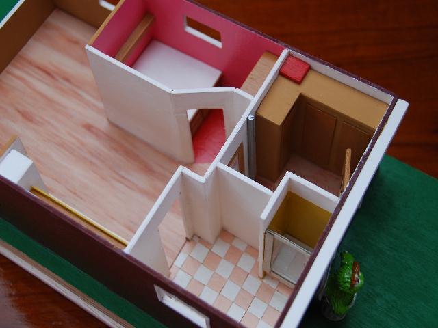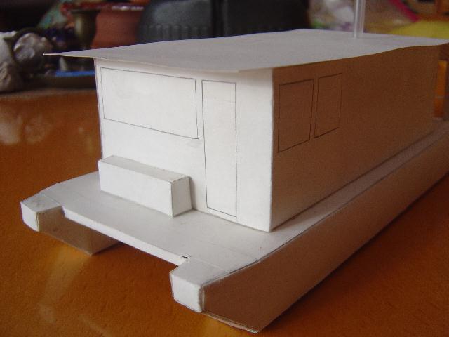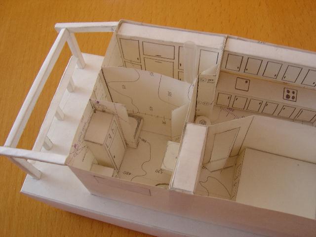 Hier habe ich vom Hausboot ein Modell aus Seekartenpapier gebaut. Dabei kann man gut die Räumlichkeiten sehen. Mit den Gedanken kann man dann durch das Haus gehen.