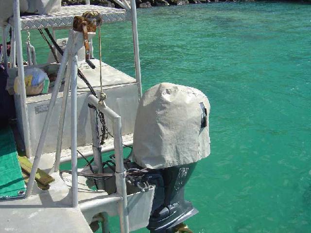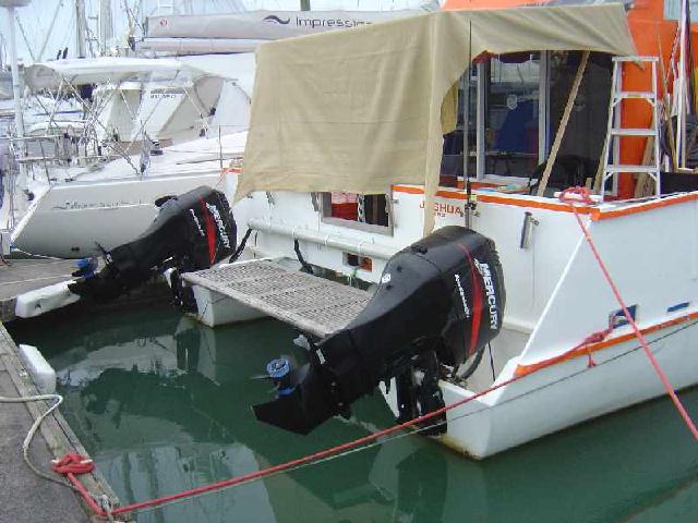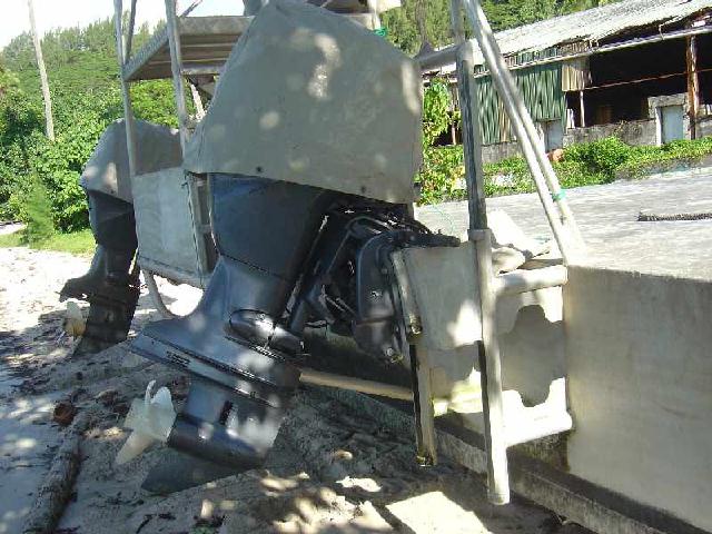 Angetrieben werden soll das Hausboot über 2 Außenbordmotoren von ca. a`60 PS. Auf den Gambier Inseln hatte ich ein Aluminiumponton gesehen, wo man die Motoren mittels Winde auf und ab lassen konnte. Damit sie nicht unnötig im Wasser sind wenn sie nicht gebraucht werden.