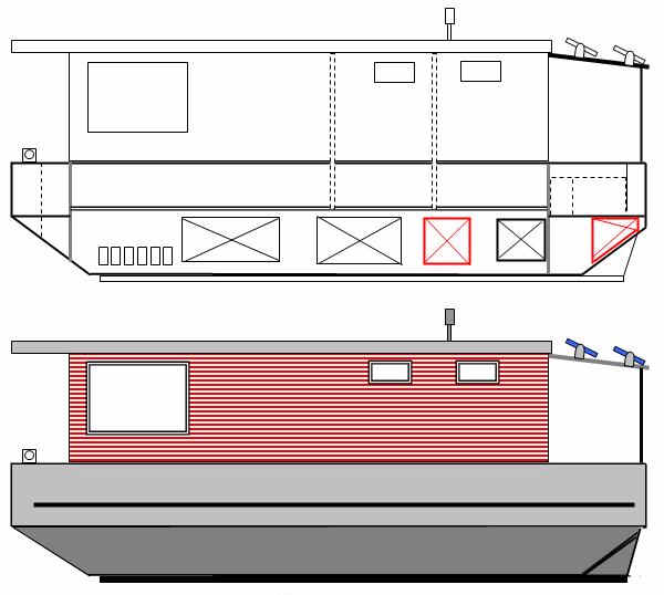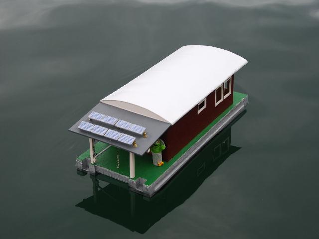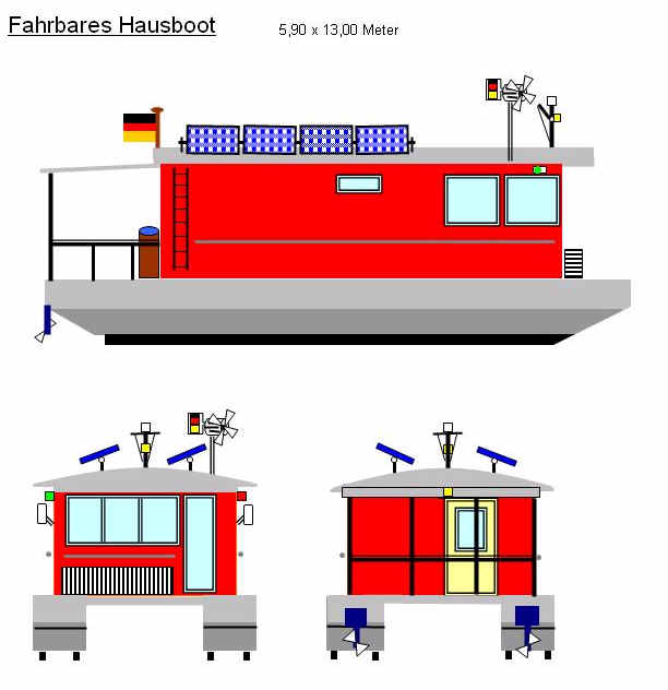Dieses Hausboot habe ich selbst berechnet und gezeichnet und irgend wie nie damit fertig. Mit dem Bau soll ca. 2012 begonnen werden. Denn solange wird unsere Weltumseglung wohl noch dauern.